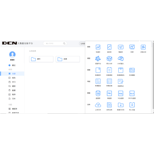 凯发k8国际数码大数据教学科研平台,集实训、数据分析、数据挖掘、科研为一体,以优质海量课程、项目案例资源、数据资源池为核心,旨在助力学校建设大数据专业实验室。